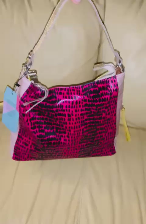 Borsa con regolabile, fantasie coccodrillo multicolore, vera pelle, chiusura a zip.